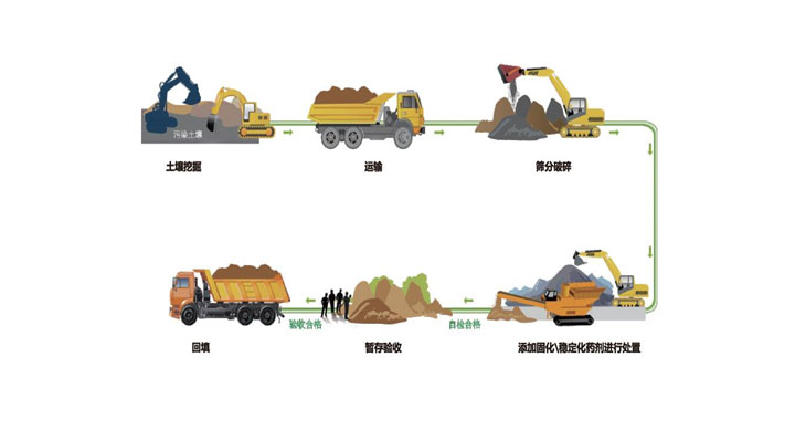 土壤修復(fù)是指利用物理、化學(xué)和生物的方法轉(zhuǎn)移、吸收、降解和轉(zhuǎn)化土壤中的污染物,使其濃度降低到可接受水平,或?qū)⒂卸居泻Φ奈廴疚镛D(zhuǎn)化為無(wú)害的物質(zhì)。主要的土壤修復(fù)技術(shù)為固化/穩(wěn)定化技術(shù)、土壤淋洗技術(shù)、多相抽提技術(shù)、異位化學(xué)氧化/還原技術(shù)等。